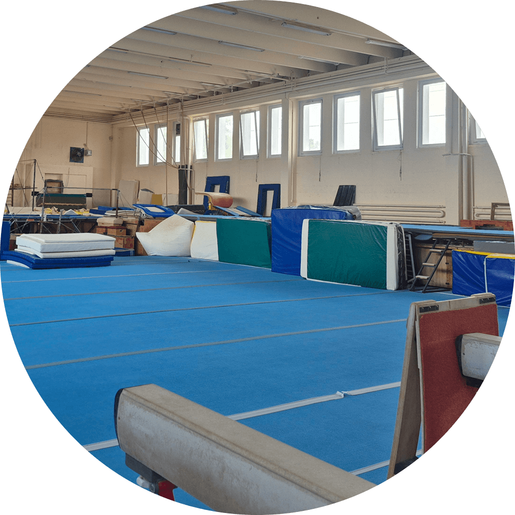 A teremben szivacsgödrök, gumiasztalok, gerendák, talaj, akrobatika csík és egy kisebb tükrös terem áll rendelkezésre, így kiváló helyszín edzőtáborokhoz, sportfoglalkozásokhoz vagy akár mozgásos workshopokhoz is.